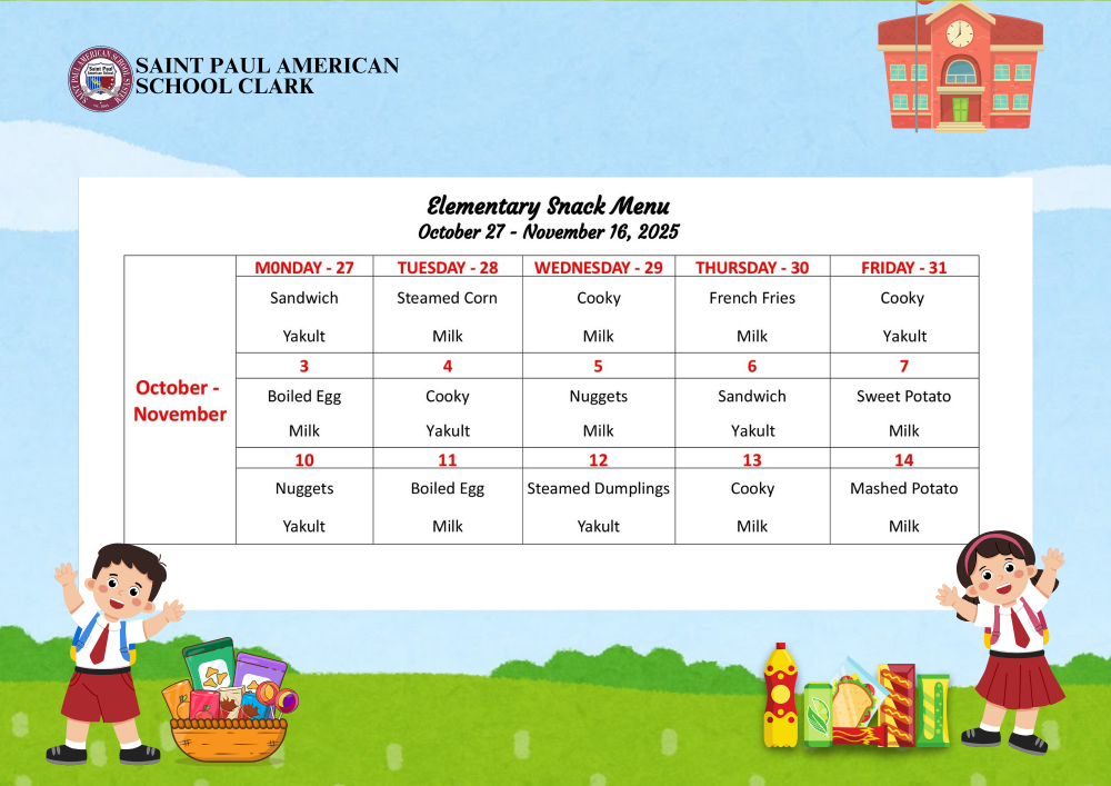 Elementary Snack Menu October 27 - November 16, 2025