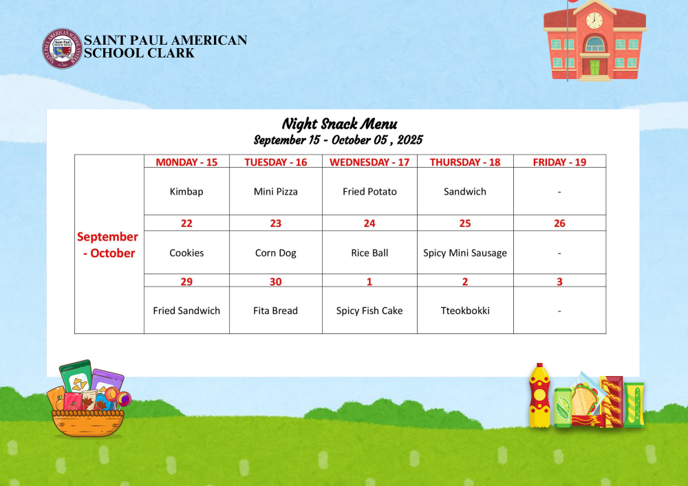 Night Snack Menu September 15 - October 05, 2025