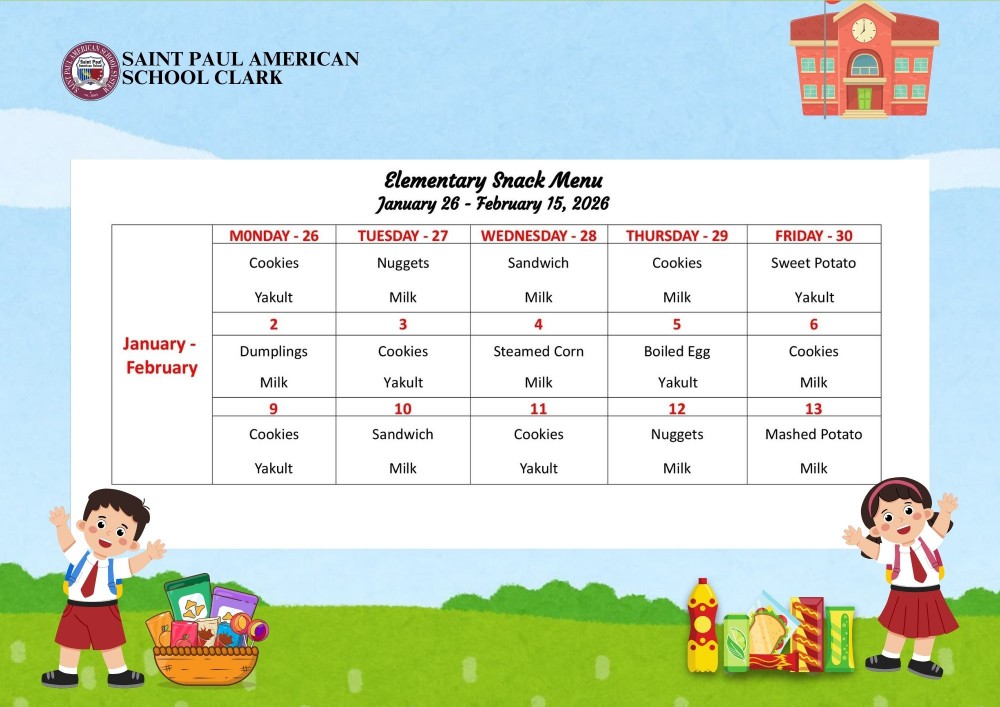 Elementary Snack Menu January 26 - February 15, 2026